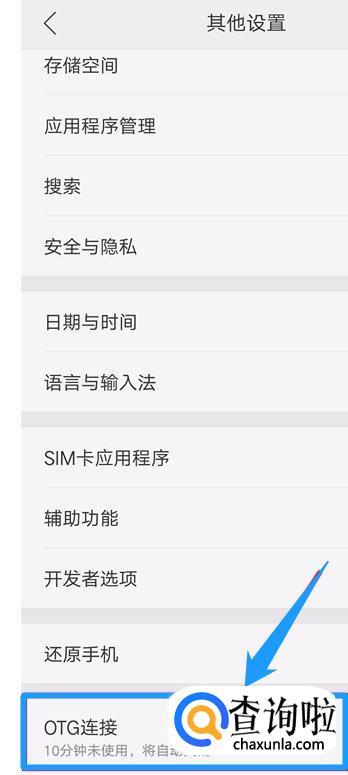 点击手机【设置】,选择“其他设置”,开启OTG连接。