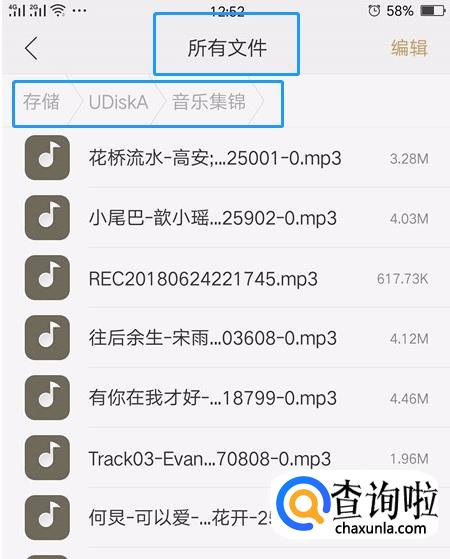 选择“文件管理”,点击【音频】,可以看到手机保存的所有音乐文件。