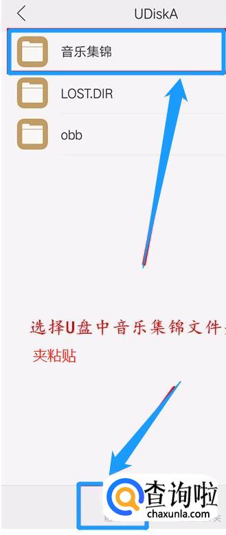 自动跳转存储位置,选择U盘文件空间,点击音乐集锦进行粘贴。
