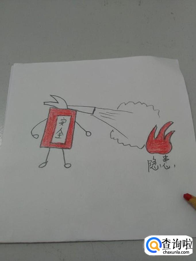 画消防安全漫画,要画出灭火器、正在喷射的泡沫、正在燃烧的火苗,还要给灭火器画上胳膊和腿,象征着有安全意识的人。下面就开始画消防安全漫画。