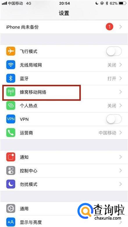 然后点击蜂窝移动网络,如下图所示。