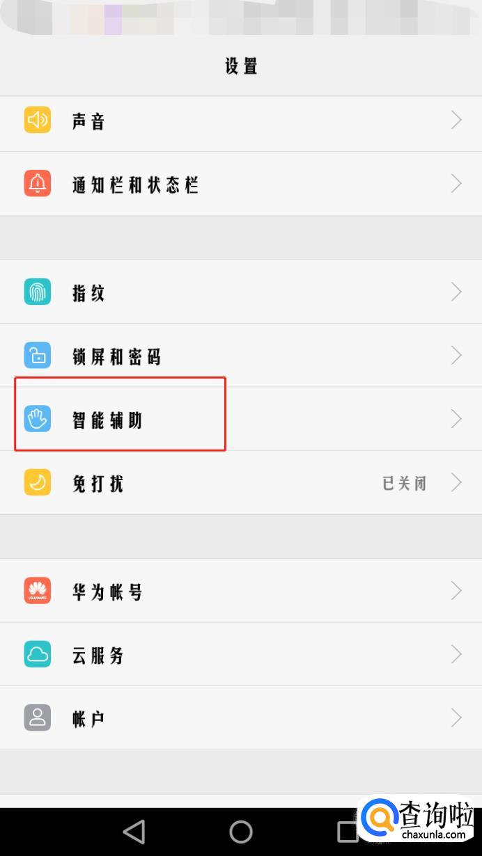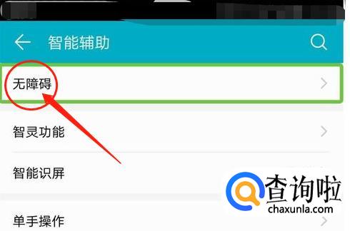 在“智能辅助”页面,找到“无障碍”点击进入。