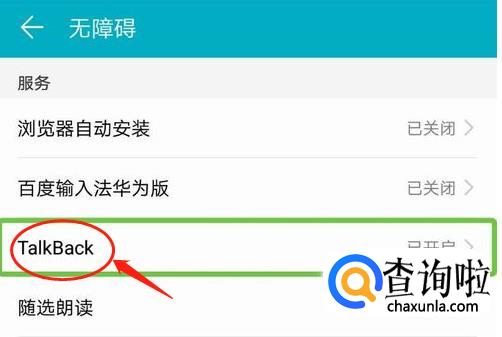 在“无障碍”页面,找到“TalkBack ”点击进入。