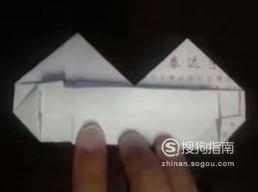 将两边的V形向后翻折,将上边对齐下边对折,两边压成三角形
