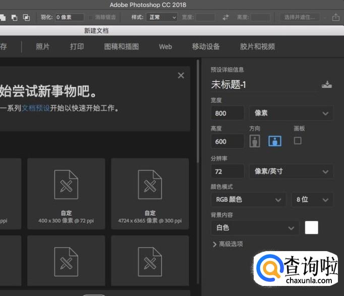 打开电脑中的PS软件,按CTRL+N进入新建文档界面,根据需求创建一个文件。