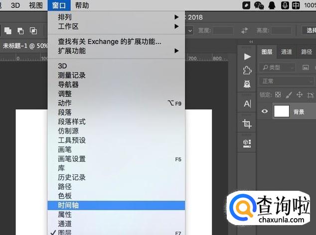 文件创建完成之后,在上方选项中点击“窗口-时间轴”,打开时间轴面板。