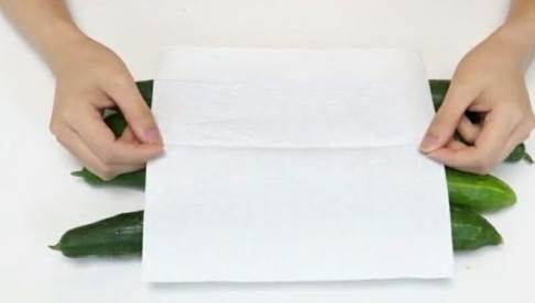 1、首先,用干净的白纸或者卫生纸将黄瓜包裹严实。