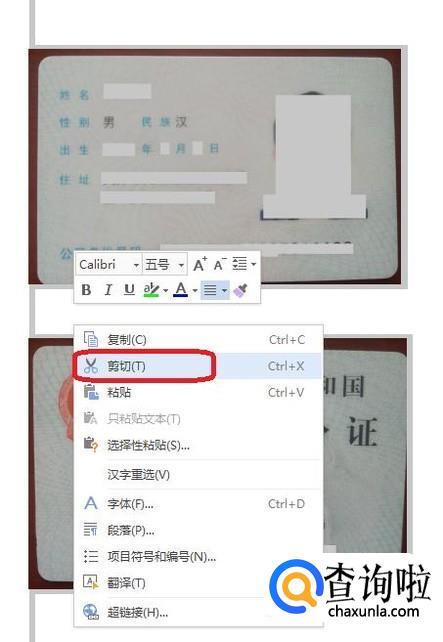 此时,命名并保存文档,其实就可以了。但Word格式的文件不便于存储和打开,我们可以把它转成图片格式。按“ctrl+a”全选文档,右键单击选择“剪切”。