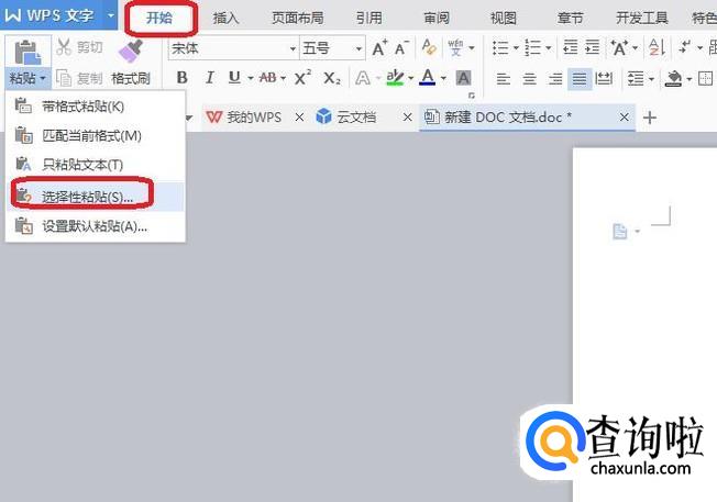 然后,点击菜单栏“开始”,“粘贴”,“选择性粘贴”。