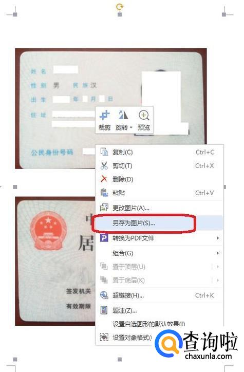 这样,身份证正反面就在一张图片上了,如图所示,右键点击图片,选择“另存为图片”就好了。图片格式更易于打开。