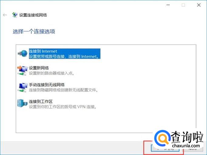 接下来,打开的页面中,选择“连接到Internet'”选项。