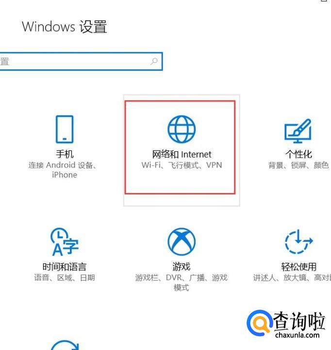 在Windows设置页面中,点击选择“网络和Internet连接”设置选项。