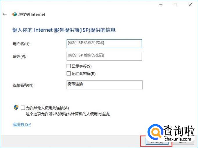 最后,输入运营商提供的账号和密码,点击“连接”按钮即可连接到宽带。