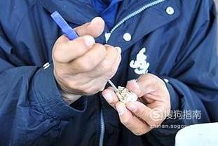 制作海螺风铃,要用线把海螺串起来,所以要在每个海螺顶部打一个线能穿过的小孔,可以用小电钻打,也可以用螺丝刀拧,钻孔时要小心,不要把海螺钻裂。