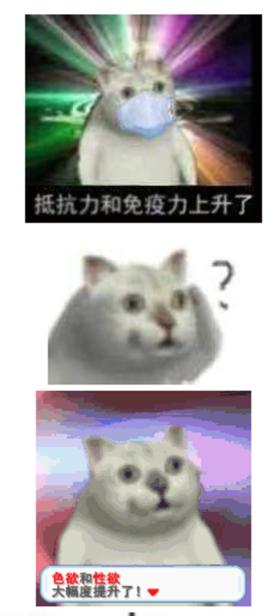 其实这个猫猫头最早的原型并不是这只猫,而是来自于日本GV的《迫真空手部》的人物MUR,因为原作人物表情实在是太过智障,所以在11区阿宅眼中,他也是一个经典素材。不过相对于真人而言,显然还是达不到太好的效果,所以,后续有人用一只表情很相似的猫咪,然后PS完成了这个魔性的表情包。