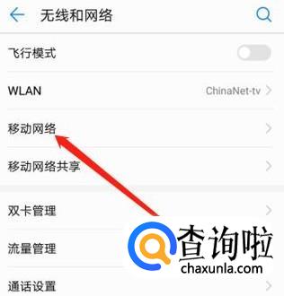 进入“无线和网络”界面后,点击“移动网络”。