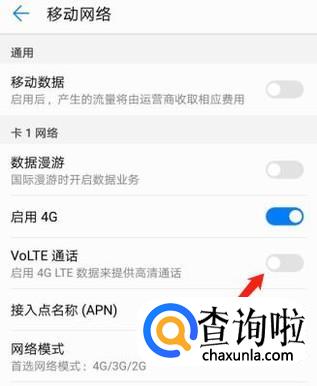在“无线和网络”界面下,将“VoLTE通话”键关闭,就可以关闭HD了。