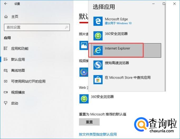弹出的界面,我们点击IE浏览器就可以了,这样我们就设置好了。