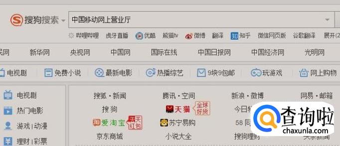 首先在搜狗浏览器中输入中国移动网上营业厅并点击回车键,如下图所示。