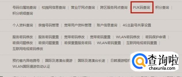 接着点击PUK码查询,如下图所示。