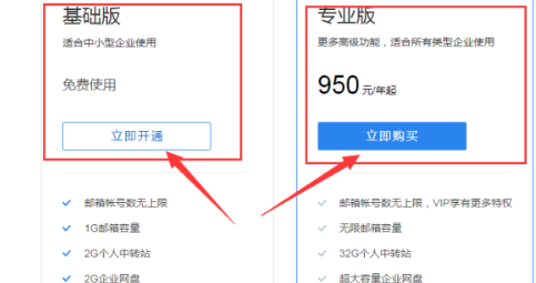 2、进去企业邮箱之后,点击蓝色按钮的”立即开通“,如下图所示: