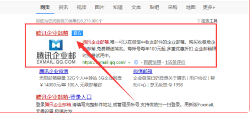 1、首先打开浏览器,搜索腾讯企业邮箱,点击进去,如下图所示: