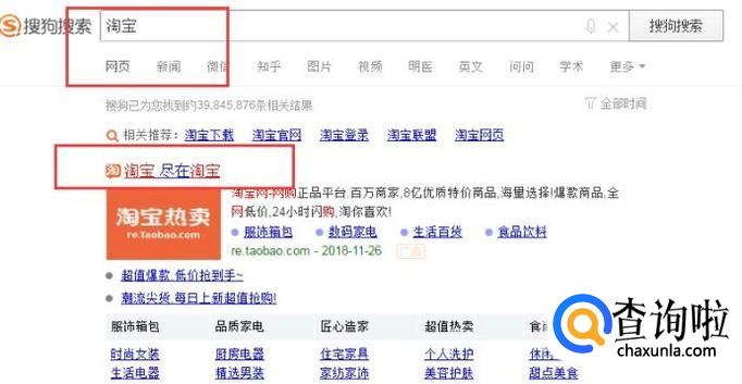 在浏览器上搜索【淘宝网】,然后点击官网链接,如下图所示: