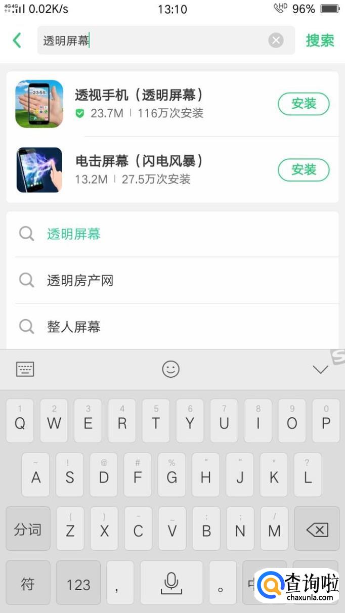 在搜索框中输入“透明屏幕”,点击搜索。