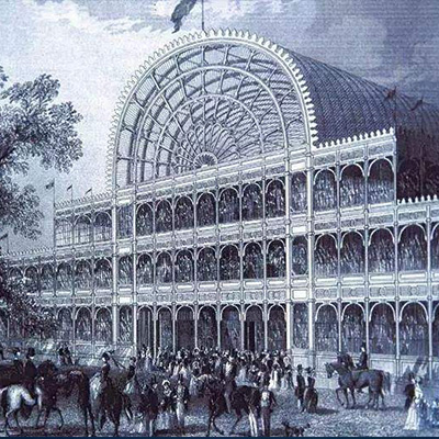 1849年,英国白金汉宫决定:在1851年举办一届规模宏大,有世界各国参与的国际性博览会。会址选在伦敦海德公园内,并要求建造一幢临时性但具有恢弘气势的展馆建筑。