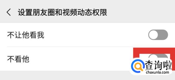 点击设置朋友圈权限之后进入到设置朋友圈权限窗口,在窗口上面开启不看他(她)的朋友圈,这样好友发布的朋友圈消息就看不到了