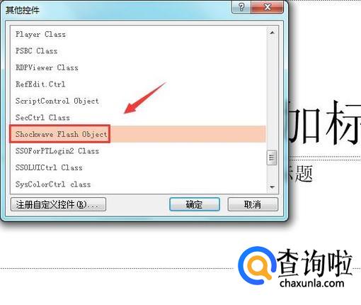 点击其他控件选项在弹出的对话框内找到Shockwave flash object选项:如图所示: