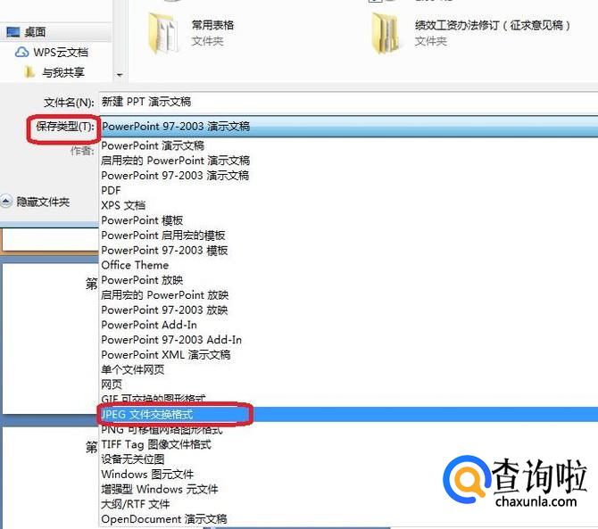出现“另存为”选项框,在保存类型中,我们打开下拉菜单,并如图所示,选择“JPEG文件交换格式”。