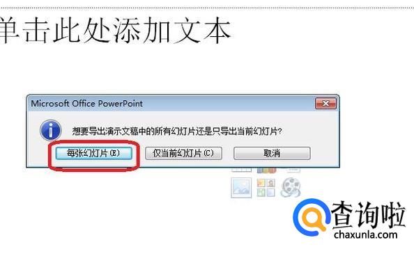 点击“保存”之后,会出现如下提示框,我们选择导出“每张幻灯片”。