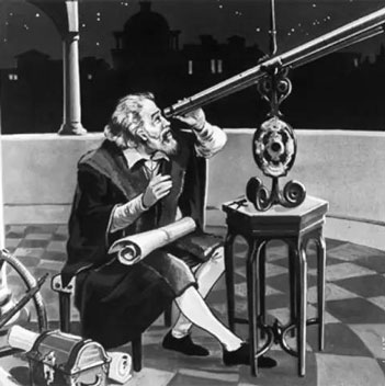 1609年8月,伽利略把望远镜指向了星空,这一举动使他成为世界天文史上第一个用望远镜观测星空的人。他观测了月亮和银河,又借助云雾减弱太阳光线,观测了太阳。望远镜使伽利略眼界大开,他发现肉眼观测到的月亮上的阴影,原来都是些大大小小的坑穴和大片的“海”(现代天文学证明,这“海”其实是平原);白茫茫的银河是由一颗颗密密麻麻的星星构成的;太阳表面还有一些大小不等的黑色斑点(后来称“太阳黑子”)。1610年1月伽利略从望远镜中发现木星附近有3个小光点,它们几乎在同一条直线上,一颗在木星右边,两颗在木星左边。奇怪的是,这些小光点有时变成4颗,有时只剩下2颗。伽利略一连几夜细心观察并详细记录,终于弄明白,原来那是4颗木星卫星。1610年9月,伽利略又从望远镜中观测到金星也像月亮一样,时圆时缺,原来这是金星围绕太阳运行的结果。