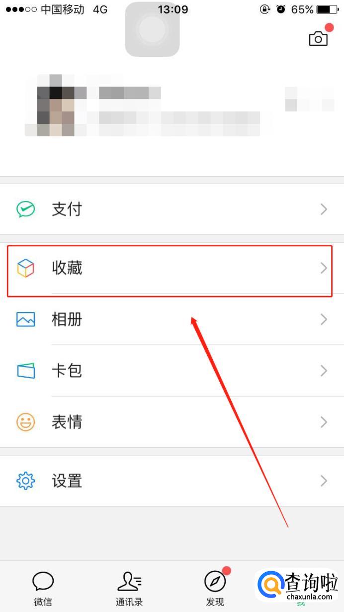 打开微信,点击“我”选择“收藏”。