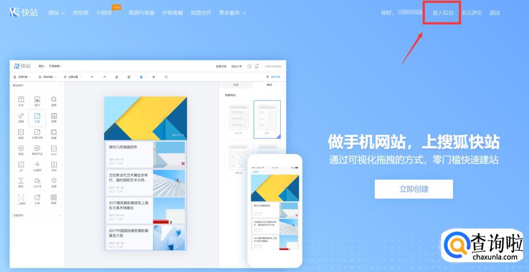 注册完成后登录,登录后选择右上角的“进入后台”。