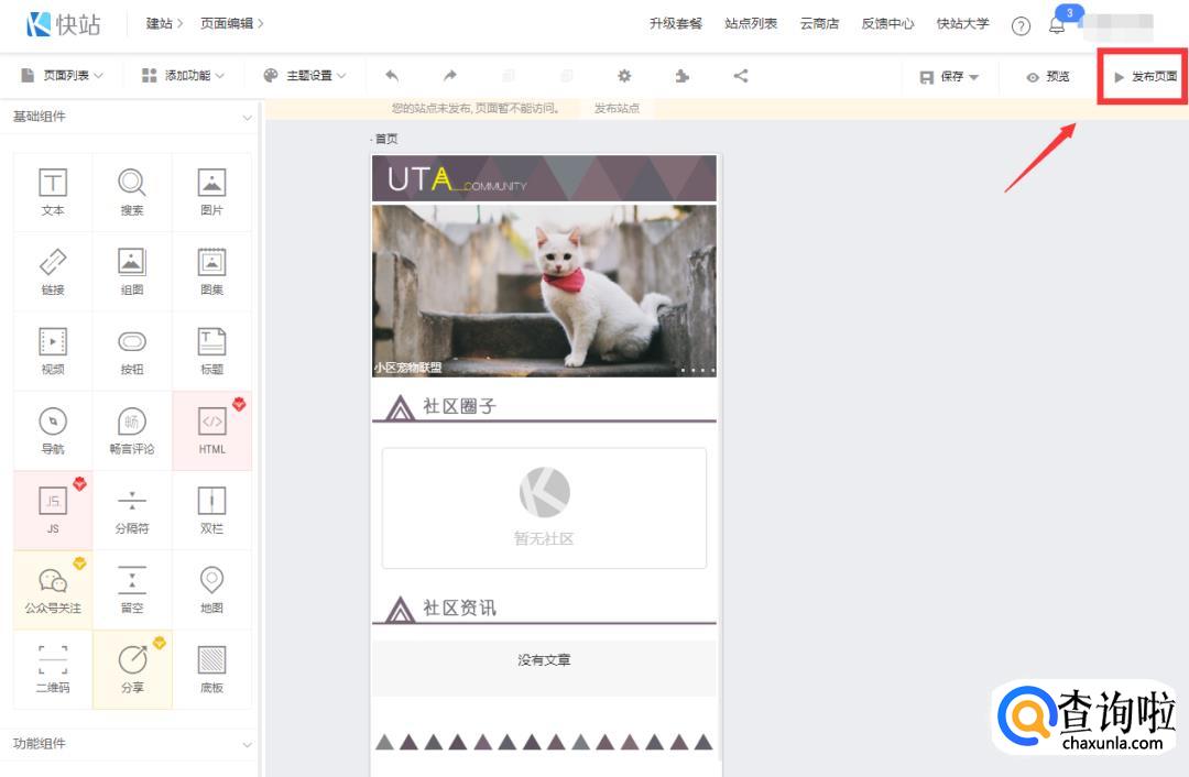 编辑完成后,点击右上角的“发布页面”即可。