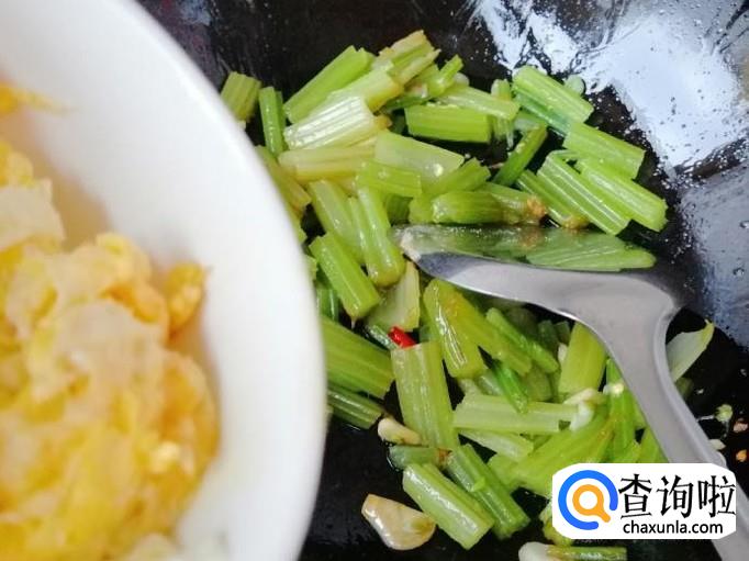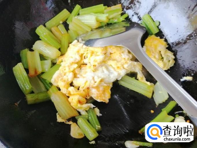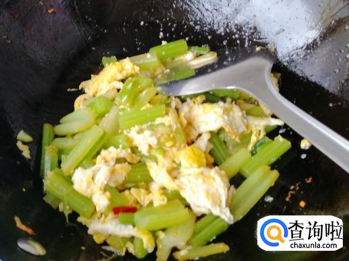 鸡蛋和芹菜都是炒熟的,翻炒几下入味就可以加适量食盐,炒匀后关火,这样我们的芹菜炒鸡蛋就已经做好了,出锅入盘上桌开吃就可以了。