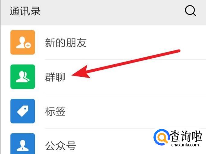 在通讯录页面,打开群聊功能。