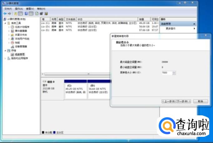 在这里我们使用电脑的控制面板功能——计算机管理——磁盘管理,在磁盘管理里面使用压缩卷功能给系统进行磁盘分区以获取足够的磁盘空间