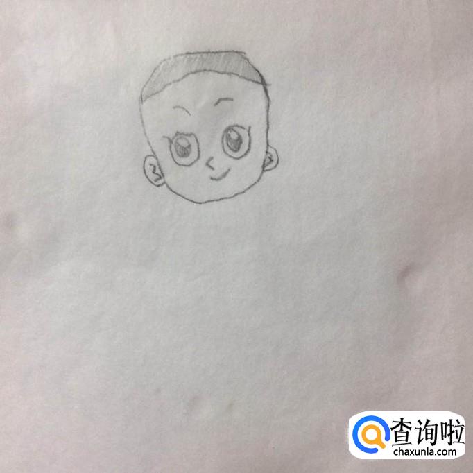 然后画出大头儿子的眉毛,眼睛,鼻子和嘴巴,如下图所示。