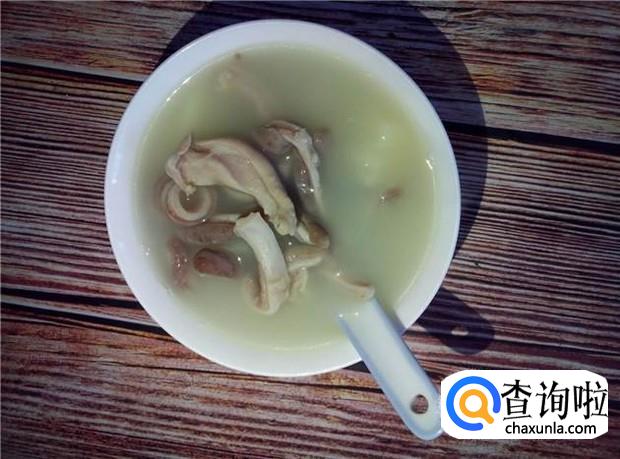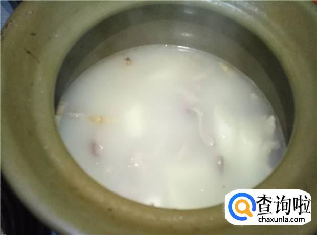 大火烧开后,转小火慢慢炖,知道把猪肚的味道给炖出来,汤变成乳白色。