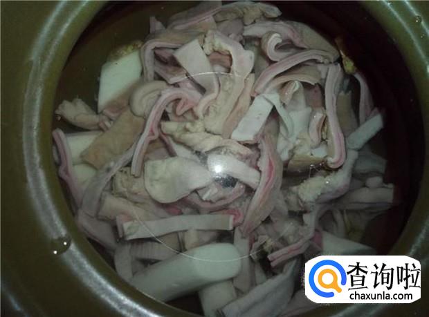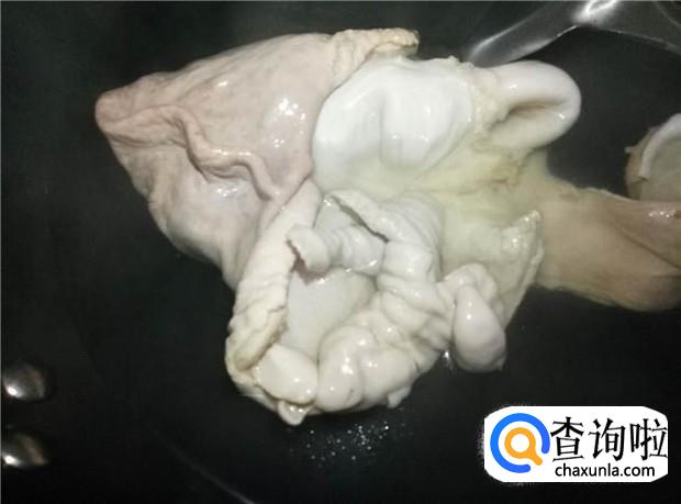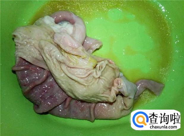 猪肚的清洗过程较复杂,前后大概清洗了五遍才干净。第一步先用盐醋不停搓,第二遍用面粉搓,第三步用花生油酱油搓,第四步再用面粉搓。直到猪肚没有味道。