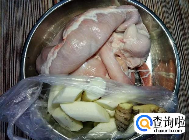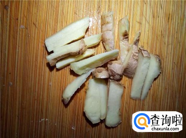 姜切片,尽量多放一点姜。淮山清洗干净,备用。