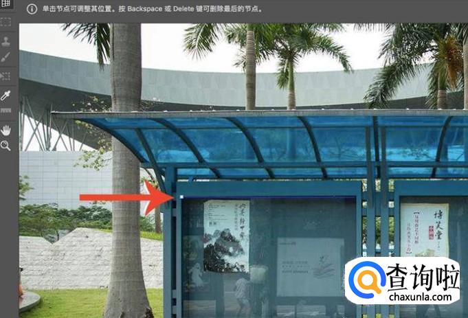 进入消失点界面,用鼠标左键点击海报的位置,即可生成一个锚点,把需要替换的部分圈起来就行了。