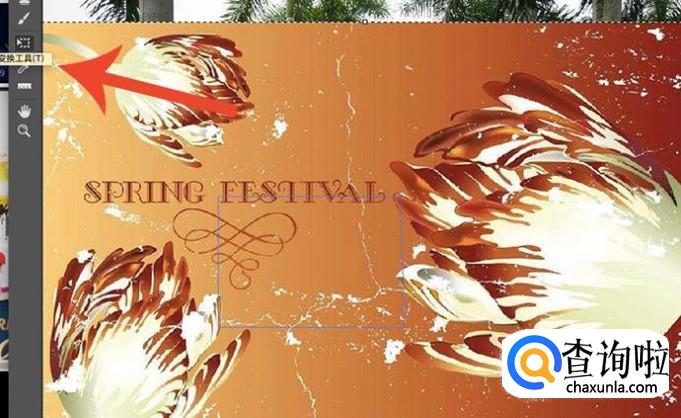 替换部位圈起来之后,ctrl+c、v复制粘贴自己的海报图片,然后在左侧选择“变换工具”来对大小进行调整。