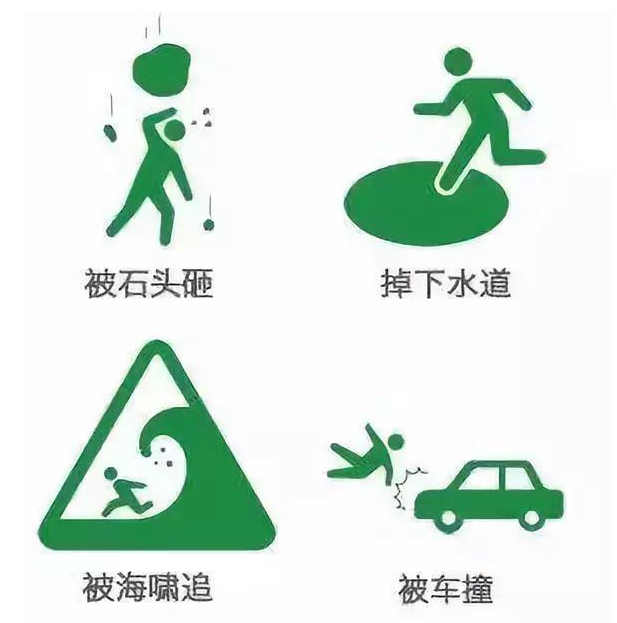 而国际设计师们认为,绿色代表安全,而红色大多表示危险、警告、停止、禁止触碰,在安全出口处放红色标牌,易误导慌乱中着急逃离的人们,让大家失去逃生机会。事实证明,红色不仅在火光冲天的火场里难以看清,而且还会增加人们的恐惧感;而绿色醒目且看着舒服。于是,“小绿人”被更广泛地使用起来。小绿人走向了世界,换发了勃勃生机,被各种PS,集合起来可以出一部花式作死百科全书了,大致有这些