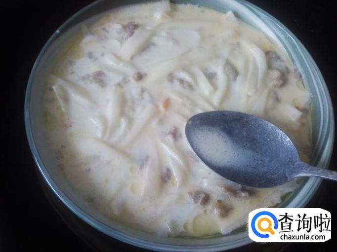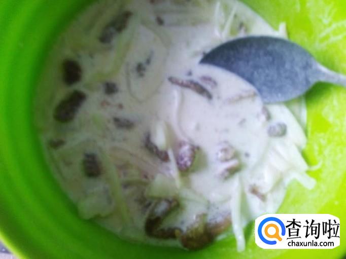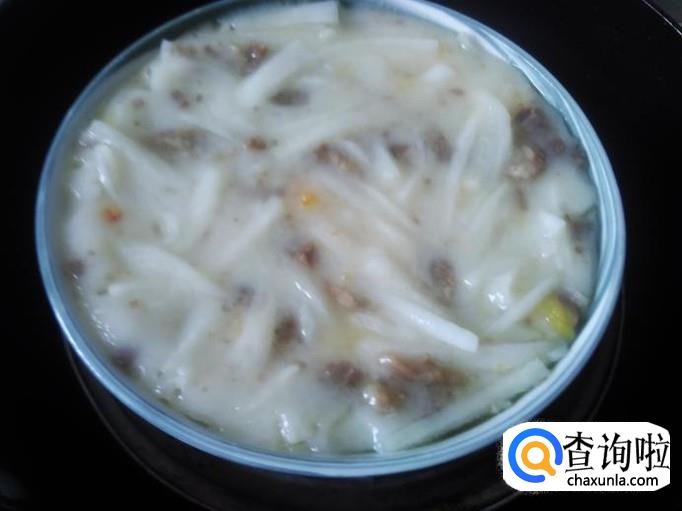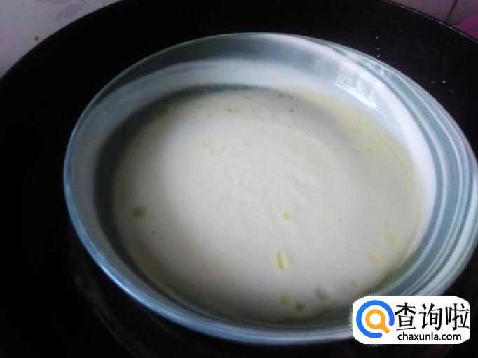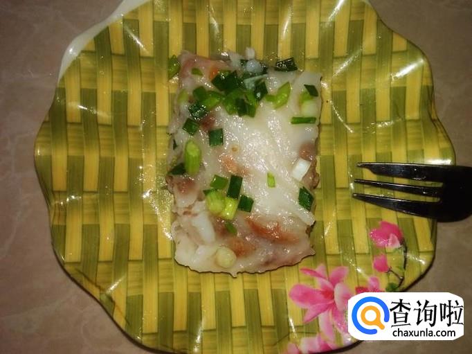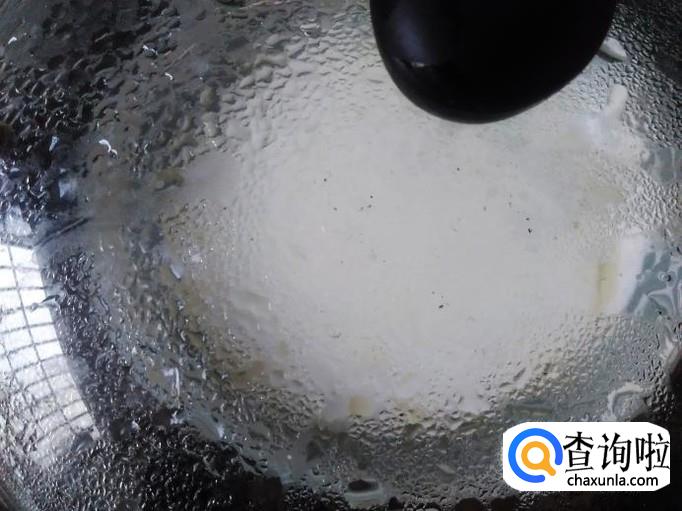 盘子用油全面刷过,然后把盘子放到蒸锅,水开后用勺子装两勺浆糊进去。
