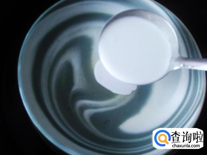 把200克的粘米粉放到盘子,加水搅拌均匀,粘米粉和水的比例是1-1。