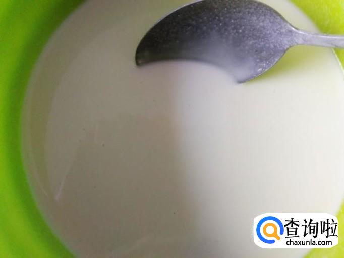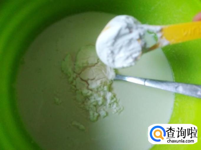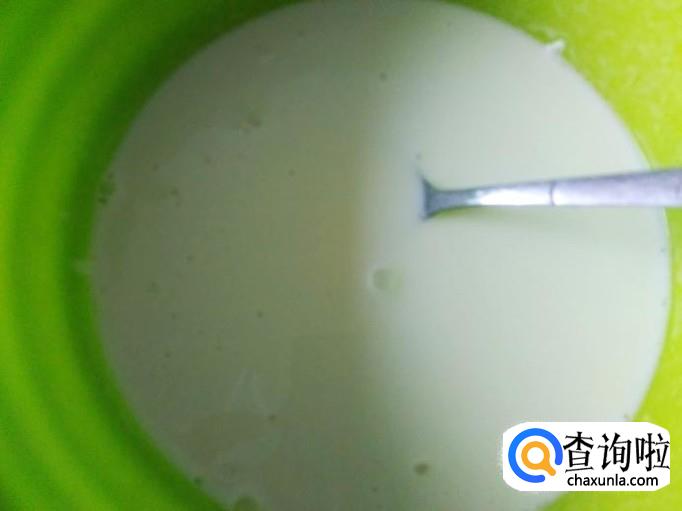 再加2小勺木薯淀粉均匀搅拌融化完。【加木薯粉主要是给糕点能定型】